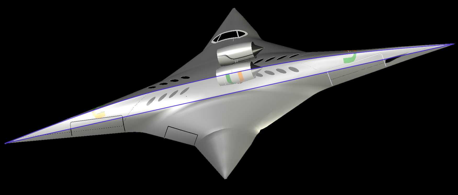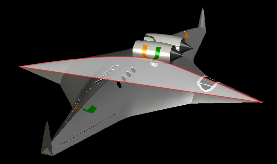 Supersonic Mode showing high sweep and thin airfoil thickness